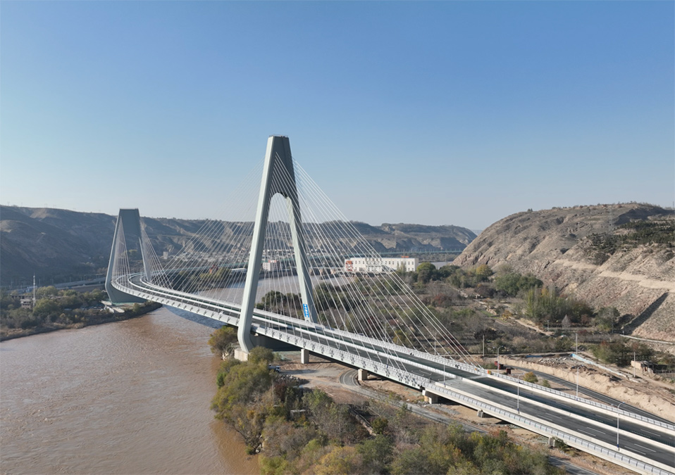 由中國二冶承建的蘭州柴家峽黃河大橋,是目前國內(nèi)曲率半徑最小跨度最大的“S”型曲線雙塔跨黃河斜拉橋。該橋?yàn)椤癆”字型高低塔斜拉索鋼箱梁橋結(jié)構(gòu),橋長(zhǎng)1250米,共設(shè)置56對(duì)平行鋼絲斜拉索。大橋構(gòu)筑了蘭州東西向貫穿城市的核心綠脈,對(duì)帶動(dòng)城區(qū)經(jīng)濟(jì)和城市向外拓展具有十分重要的使命,同時(shí)也為“絲綢之路”經(jīng)濟(jì)帶建設(shè)提供重要支點(diǎn)。