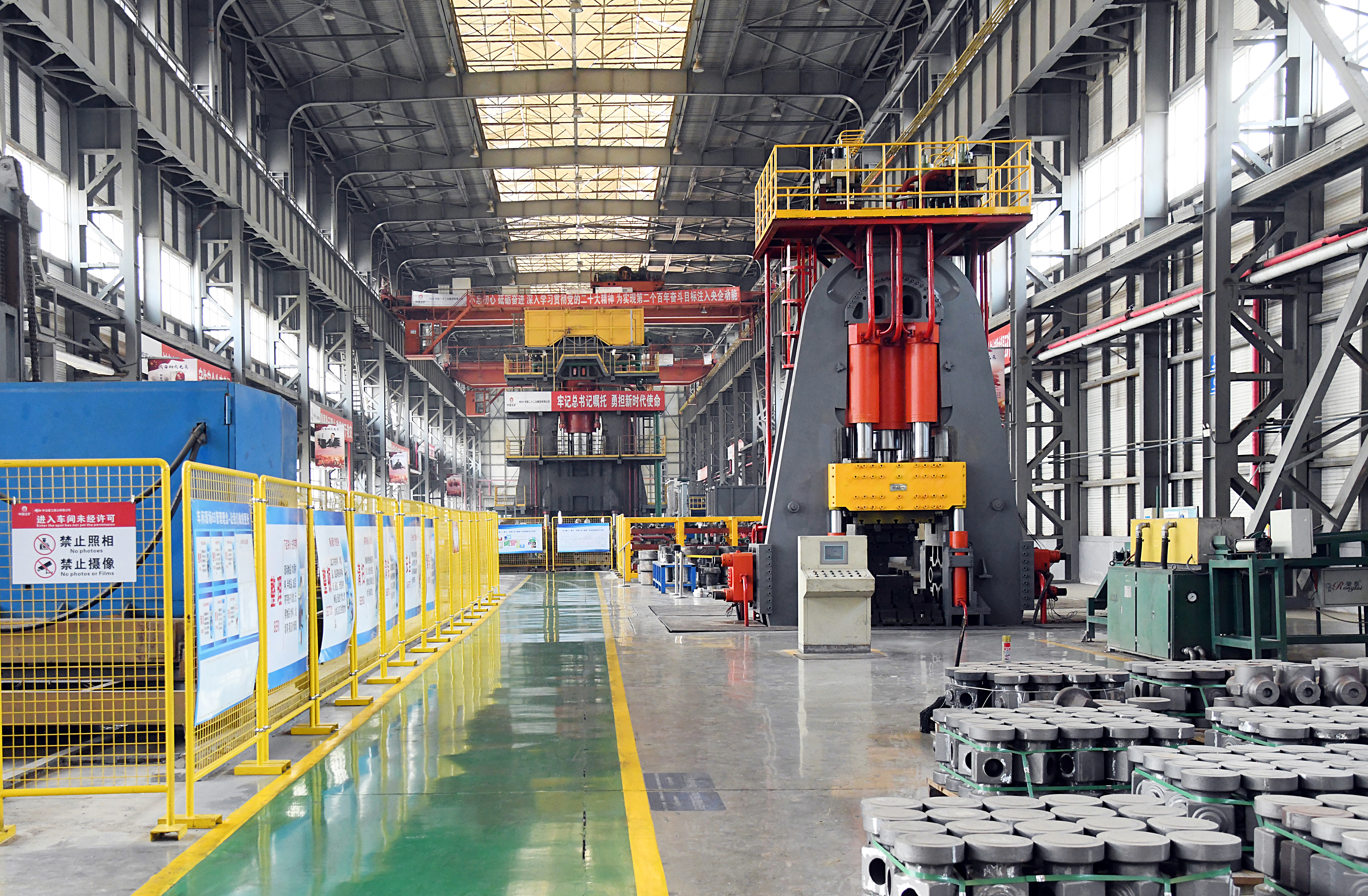 由中國二十二冶生產(chǎn)的重型壓機(jī)及產(chǎn)線擁有預(yù)應(yīng)力鋼絲纏繞、特重型設(shè)備原位安裝、厚板焊接等核心技術(shù),產(chǎn)品涵蓋(多向)模鍛液壓機(jī)、板片成型液壓機(jī)、換熱片壓機(jī)、海綿鈦壓機(jī)、特色中小型壓機(jī)等工藝生產(chǎn)線及配套設(shè)備。產(chǎn)品榮獲國家科學(xué)技術(shù)進(jìn)步獎(jiǎng)、國家優(yōu)質(zhì)工程獎(jiǎng)、冶金科學(xué)技術(shù)獎(jiǎng)、魯班獎(jiǎng)等多項(xiàng)榮譽(yù)。