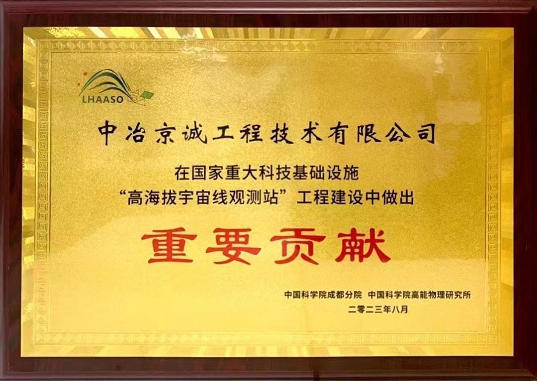 8月25日獲悉,國家重大科研基礎設施——高海拔宇宙線觀測站(LHAASO)工程建設總結會在成都天府宇宙線研究中心隆重舉辦。中冶京誠作為觀測站MD探測器外殼的唯一總包單位榮獲“重要貢獻”獎。中國科學院院士、中科院高能物理研究所所長王貽芳出席會議并為獲獎單位頒獎。